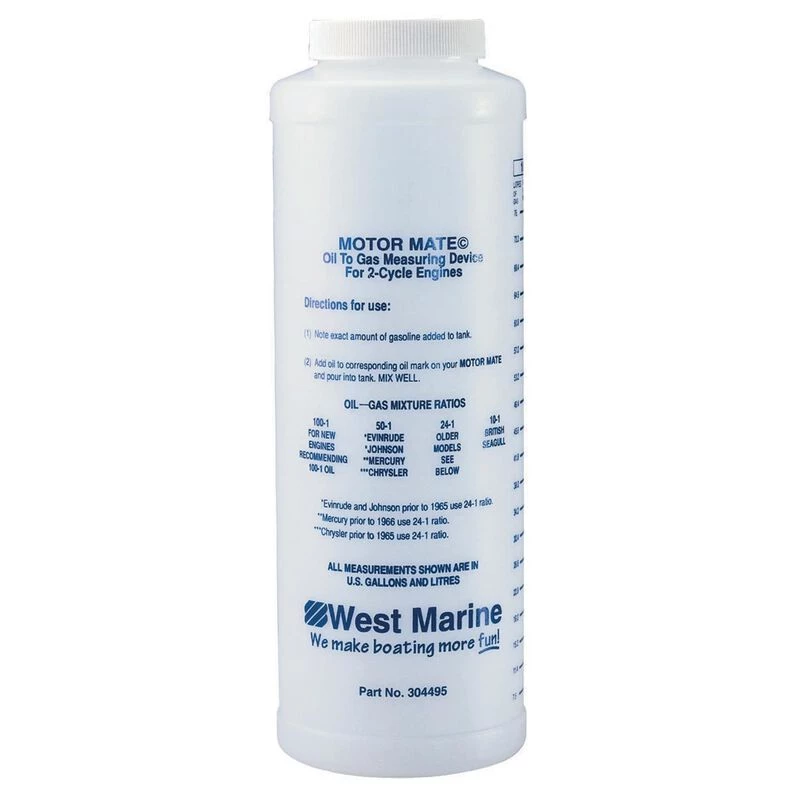 Our mixture bottle is wide-mouthed, easy-to-pour, and has accurate oil-level marks to help you mix precise ratios of oil to gas for your outboard engine.