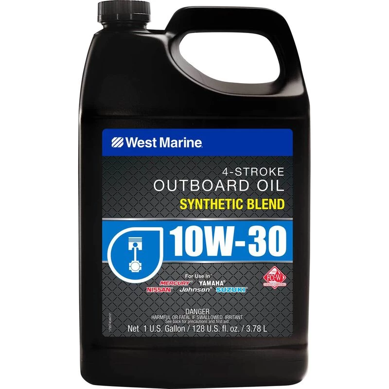 West Marine Synthetic Blend 4-Stroke Outboard Oil contains more performance-boosting additives than standard motor oil.